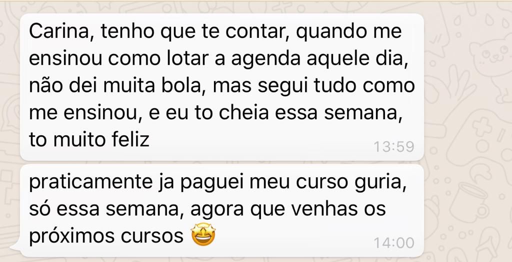 "Depois de aplicar as técnicas do curso, consegui dobrar minhas clientes. É incrível o poder do seu método!"